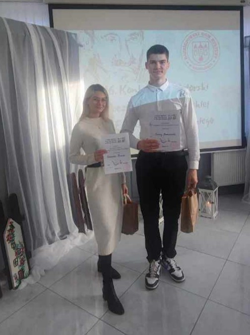 Wzięli w nim udział uczniowie z naszej szkoły. Dominika Klauze z klasy 4 TLS zdobyła 2. miejsce, a Cezary Moraczewski z klasy 5 TI otrzymał wyróżnienie.
